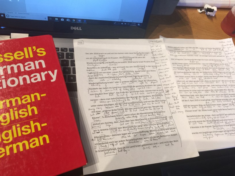 My Saturday afternoon recharge: translating German to English for the Jerusalem Messenger Newsletter.