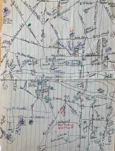 When I travel to Paris, I always construct a map of my Paris walks for that day. While I am following my sometimes-hard-to-read and not-to-scale hand-drawn maps, my sweet husband is following the GPS on his Iphone.