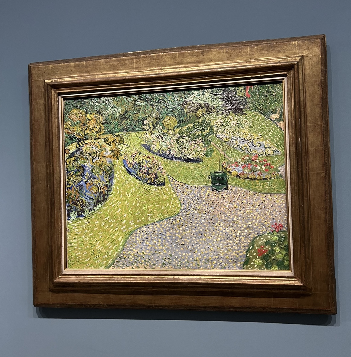Jardin à Auvers (1890): is in a private collection so can only be viewed by the public (c’est moi) in an Exhibition. I love the varied brushstrokes in this painting, almost pointillism, which combine swirls, dots, and strong outlines. So unique.