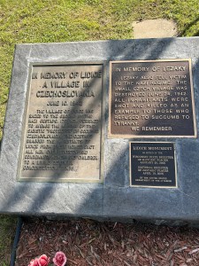 My husband and I drove across the United states, from Texas almost to Canada, to attend the Memorial service for Lidice last month–it meant that much to us to honor the memory of these victims. My father fought four years in the Pacific during World War II to conquer this evil enemy and to keep this annihilation from happening to other towns and countries. This trip was to show honor to my Dad, as well.