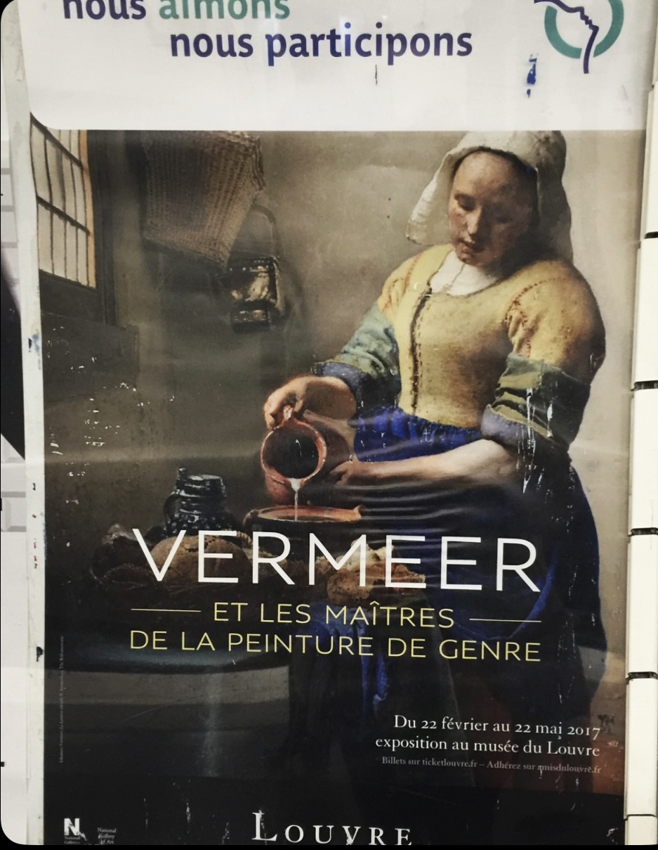 In March 2017, I visited an incredible exhibition hosted by the Musée du Louvre called Vermeer et Les Maitres de la Peinture de Genre which included five Vermeer’s that I had not seen before. The Vermeer exhibition included, for the first time, a pairing of The Geographer (Stadel Museum, Frankfurt, Germany) with its original partner The Astronomer (Musee du Louvre, Paris). Vermeer is showing the modernity of the scientific revolution, le siècle de la révolution scientifique, of XVII siècle hollandais. The Louvre Exhibition of Vermeer was the most visited exhibition in the museum’s history and prompted the director to limit the visitors per hour.