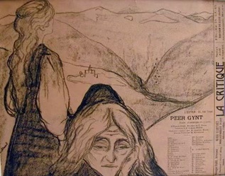 In Peer Gynt, Ibsen takes a resounding break from the national romanticism of his earlier work. In this play, according to Eydoux, Ibsen gleefully castigates Peer, a dreamer and braggart, a symbol of a certain Norwegianness, the man of compromise who never confronts obstacles and refuses any irreversible action (“La Bataille”, my translation, French to English, 99). Since the first performance in 1876, at the Christiania Theatre in Norway, Peer has been elevated to the status of a national hero [note that Eydoux wrote this in 1999—is this still true today?].