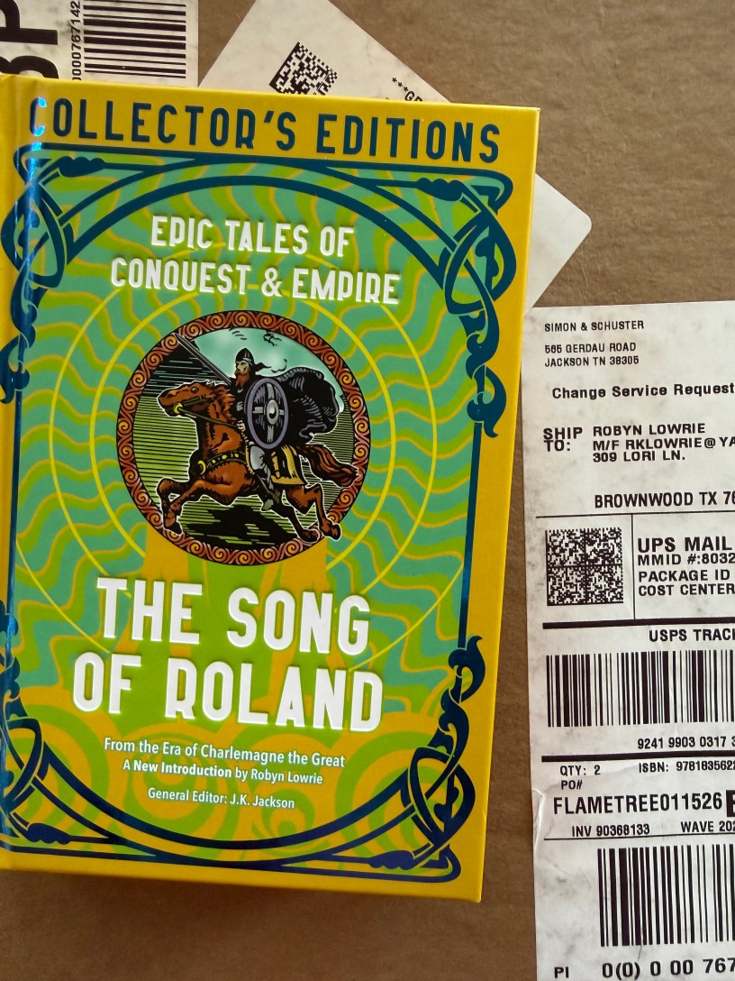 “This Flame Tree Collector’s Edition brings together two English translations of the famous epic poem, one version in verse and another in prose, eliciting new insights into the medieval work of Charlemagne and Roland”(book cover!). It has just been released in London and will be available in the United States next week.