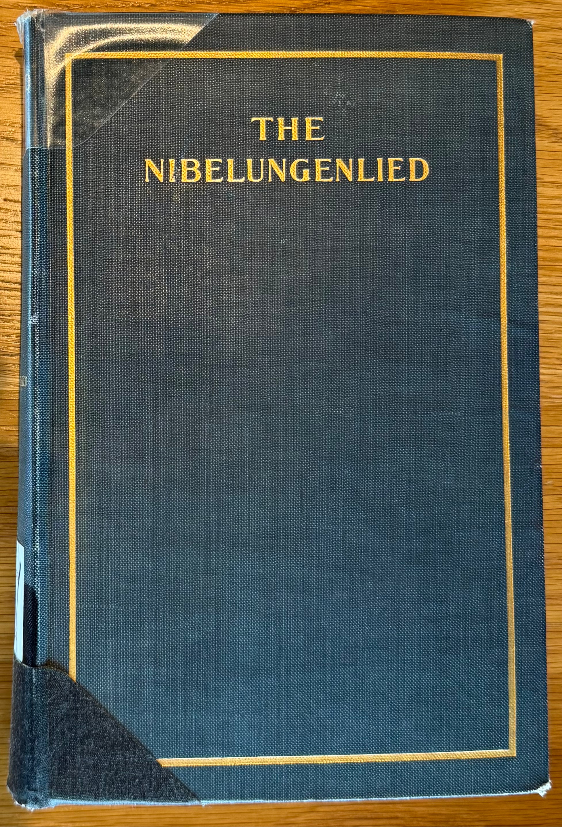 As a follow-up to my blog on the great National Epic of France, The Song of Roland, I am reviewing a treasure from my library, a 1901 edition of the great German epic Nibelungenlied. According to William H. Carpenter, Professor of Germanic Philology at Columbia University, the Nibelungenlied is one of the “most important literary monuments that the German mind has produced in all the periods of its history” (1901, Carpenter Intro to Nibelungenlied).